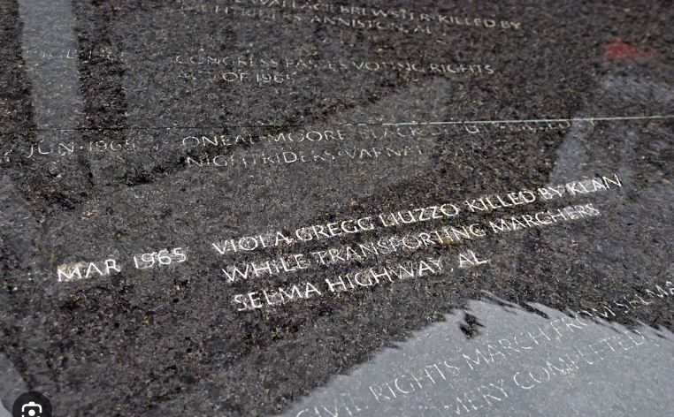 Maya Lin created the Civil Rights Memorial in Montgomery, Alabama. The flat marble crucible with water flowing over it lists murdered civil rights activists.