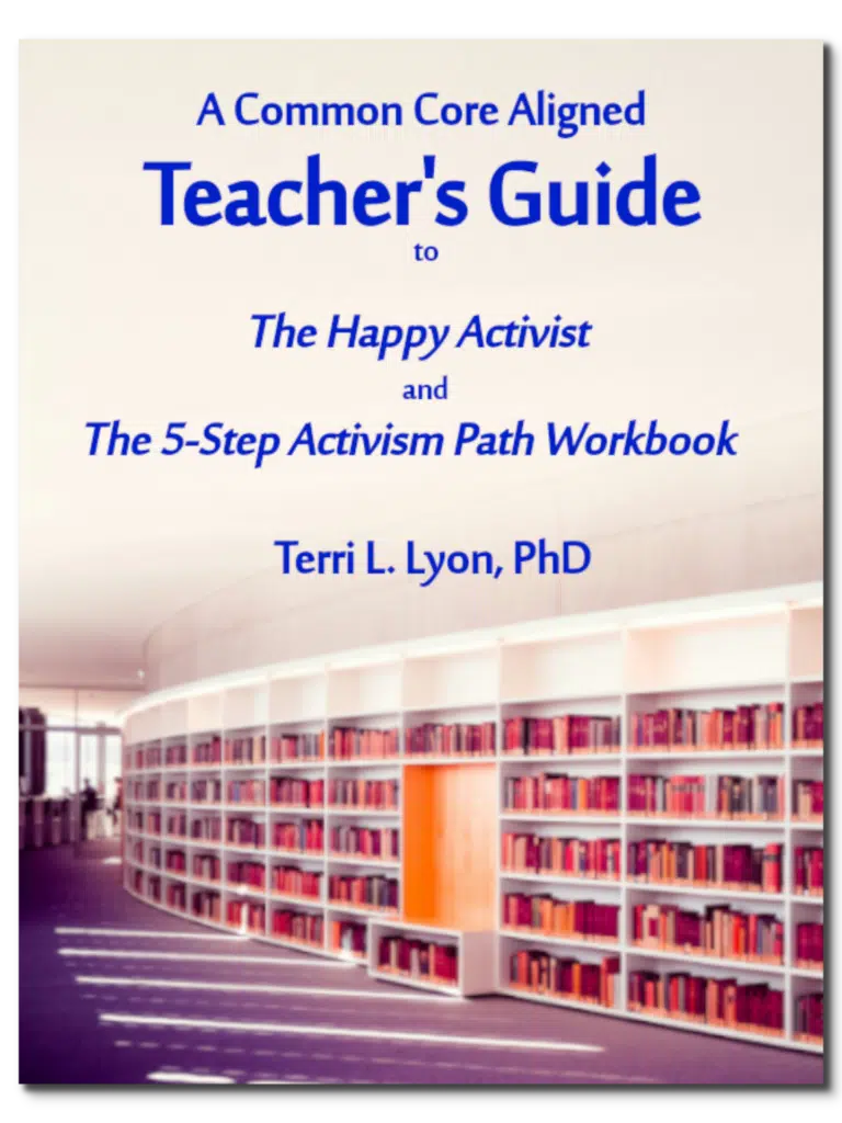 The Happy Activist and the companion The 5-Step Activism Path Workbook guide students down a 5-step path to effective, motivating activism that allows students to: